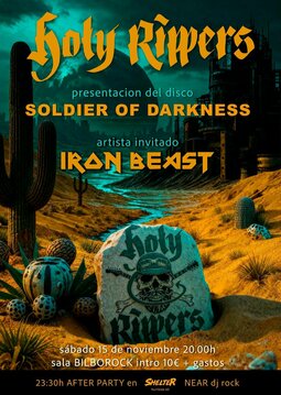 El sábado 15 de noviembre a partir de las 20h, la banda bizkaitarra Holy Rippers presenta en directo en Bilborock su primer álbum “Soldier Of Darkness”. Estará acompañada por Iron Beast, banda de tributo a Iron Maiden. Tras el concierto, se celebrará una afterparty en Shelter (c/ Iturribide) con la pinchada de Near DJRock.